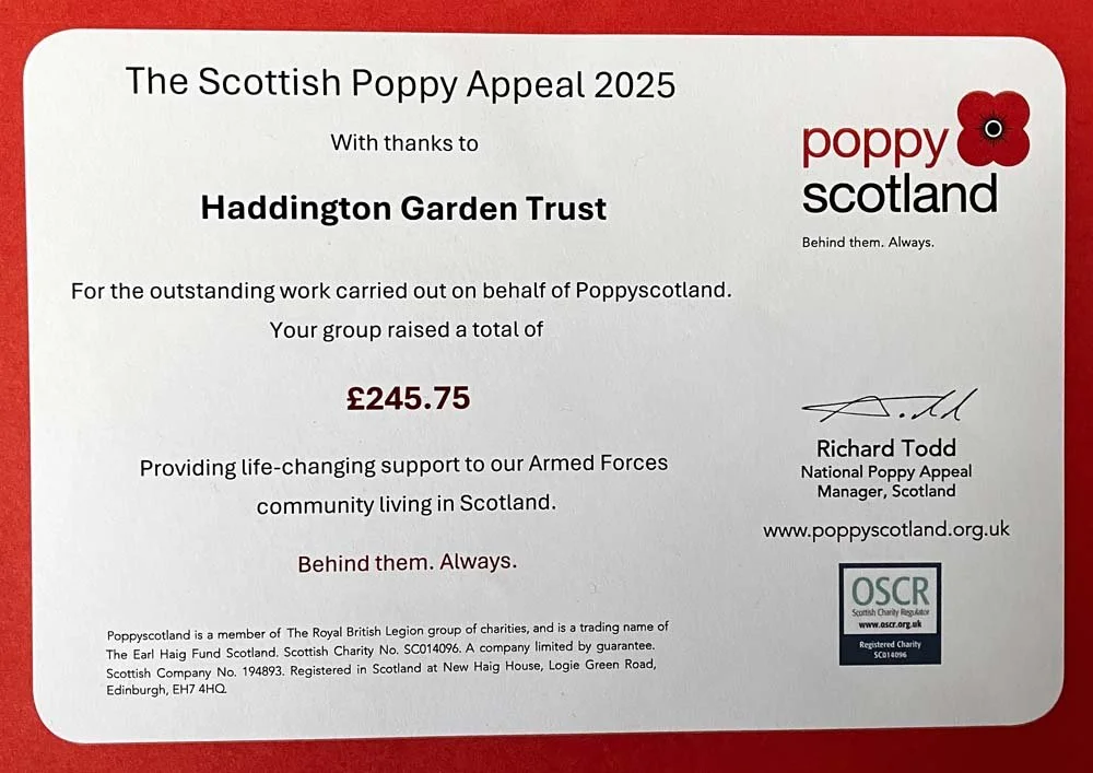 Haddington Garden’s ‘PoppyScotland Garden of Remembrance’ Raises £245 in its First Year